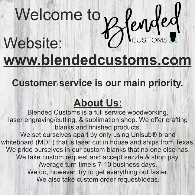 All designs by Blended Customs can be used for personal and small business commercial use only and are not to be copied, distributed, modified, shared, or resold in a digital format. Designs are to be used to create an end physical product only.
