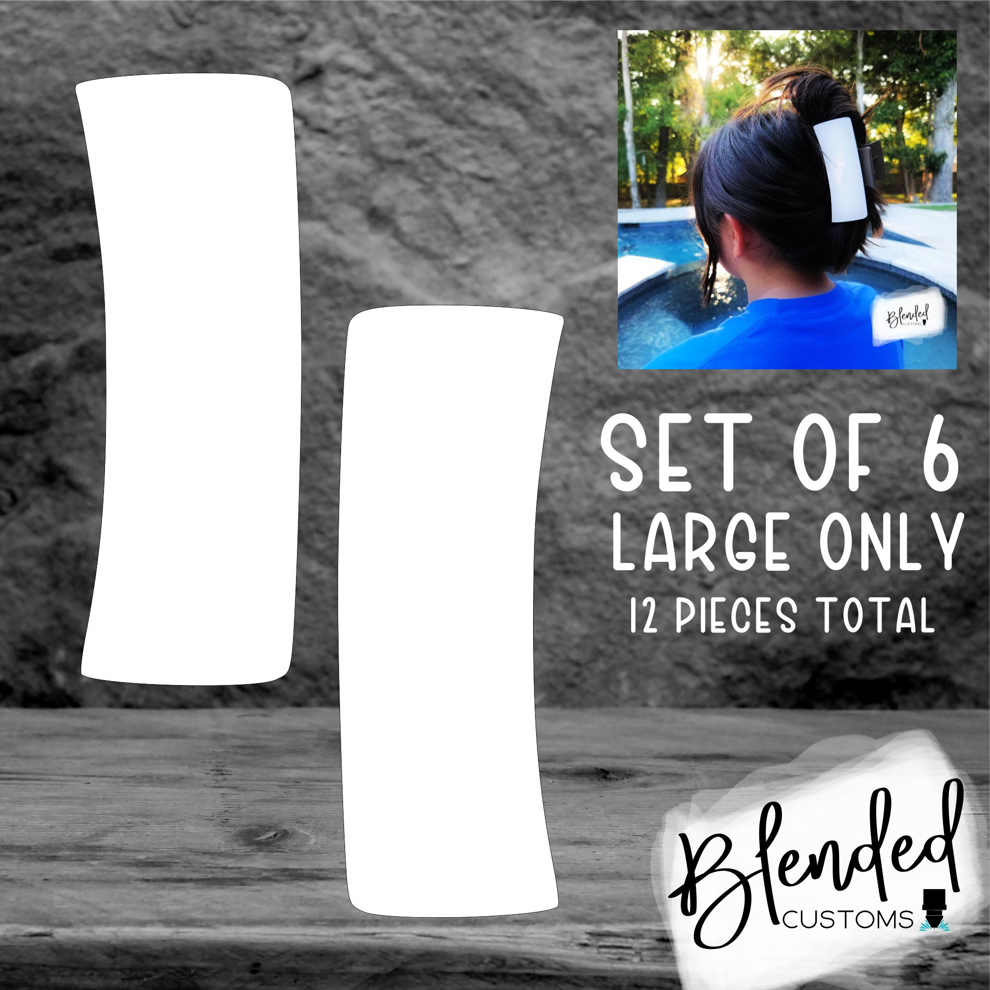Product form Large Hair Clip Sublimation Blank - Set of 6 5 reviews 5 reviews $8.50 Material Type Unisub® Whiteboard MDF Unisub® Sublimation Acrylic White Cast Acrylic Quantity Add to cart Guaranteed secure & safe checkout. 267 Verified Reviews
